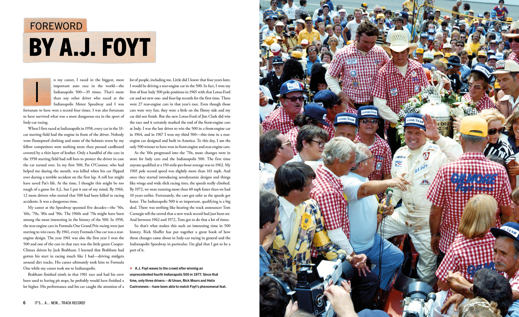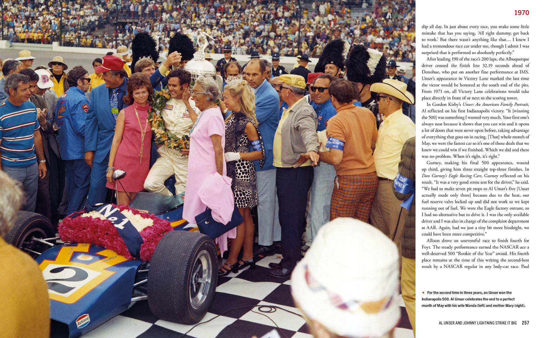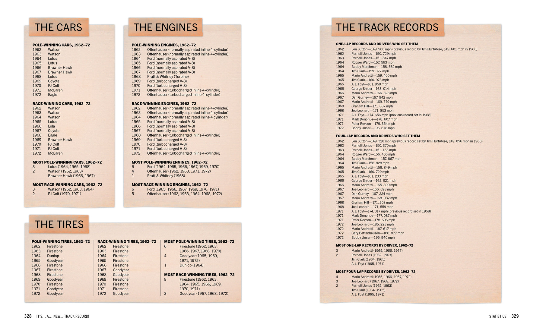 • The 1964 Indy 500 saw A.J. Foyt—writer of this book’s foreword—achieve the last win for a front-engine roadster.